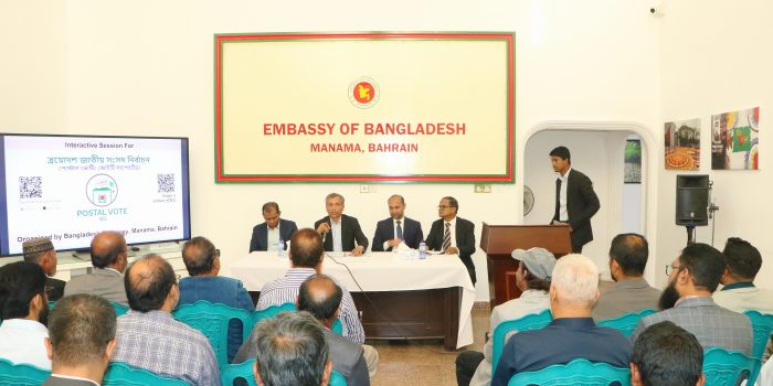 জাতীয় সংসদ নির্বাচন উপলক্ষে প্রবাসীদের ভোটার নিবন্ধন নিয়ে মতবিনিময় সভা করেন বাংলাদেশ দূতাবাস বাহরাইন       সাবেক প্রধানমন্ত্রী বেগম খালেদা জিয়ার রোগমুক্তি কামনায় বাহরাইনে দোয়া মাহফিল অনুষ্ঠিত       ১২ বছরের সফল যাত্রা শেষে ১৩ বছরে পদার্পণ করেছেন ফেনী ইউনিভার্সিটি       গণসংযোগকালে ফেনীতে বিএনপি নেতা আব্দুল আউয়াল মিন্টুর গাড়ি বহরে হামলা, আহত ১০       কুমিল্লা সদর- ৬ আসনে হাজী আমিন উর রশিদ ইয়াছিনকে মনোনয়ন দেওয়ার দাবিতে ফ্রান্সে সংবাদ সম্মেলন       বাংলাদেশ দূতাবাস বাহরাইনের উদ্যোগে প্রবাসীদের জন্য সচেতনতামূলক মোবাইল কনস্যুলার ক্যাম্পের আয়োজন       কুমিল্লা সদর- ৬ আসনে হাজী আমিন উর রশিদ ইয়াছিনকে দলীয় মনোনয়ন দেওয়ার দাবিতে বাহরাইন প্রবাসীদের সংবাদ সম্মেলন       বৃহত্তর পাবনা সোসাইটি বাহরাইনের সভাপতি মরহুম হায়াত উল্ল্যাহ মল্লিকের আত্মার মাগফিরাত কামনা করে স্মরণ সভা       বাহরাইনের বিশিষ্ঠ ব্যাবসায়ী নূরুল ইসলাম নূরের পিতা: আবুল কালাম আজাদের বিদেহী আত্মার মাগফিরাত কামনায় দোয়া মাহফিল অনুষ্ঠিত       বাহরাইনে একাধিক দ্বিপাক্ষিক বৈঠক করলেন পররাষ্ট্র উপদেষ্টা মো. তৌহিদ হোসেন