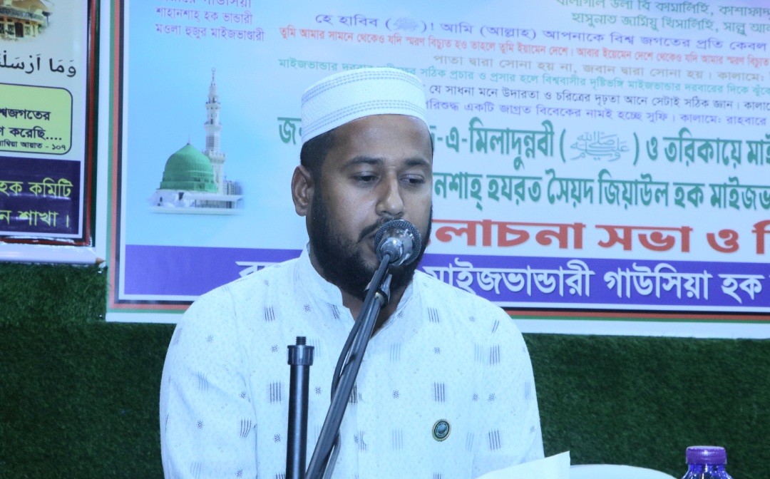 এবং মাইজভান্ডারি কালাম পরিবেশন করেন প্রচার সম্পাদক জিয়াউল হক জিয়া।