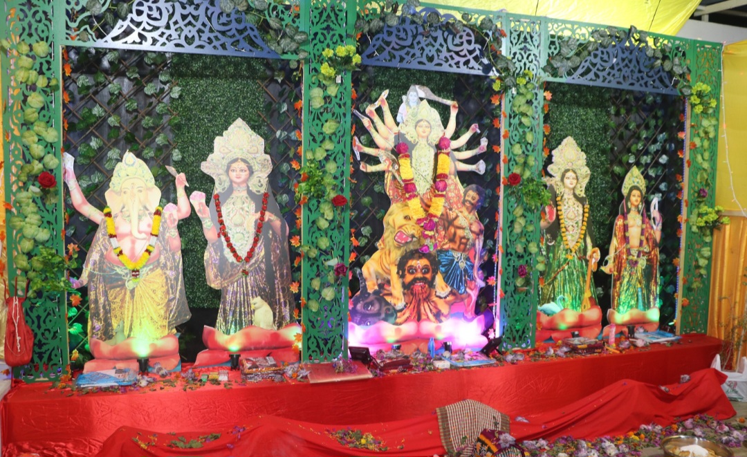 বুধবার দেশটির বুধাইয়ার শহরের কারানায় প্লাজা গার্ডেনে স্থানীয় সময় রাত ৯টায় স্থাপিত অস্থায়ী মণ্ডপে এ পূজার আয়োজন করা হয়।