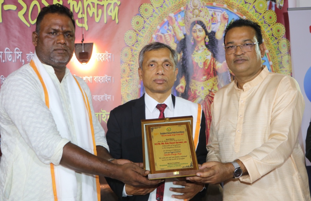 বাংলাদেশ জাতীয় হিন্দু মহাজোট বাহরাইন শাখার উদ্যোগে মহানবমী পূজা পালিত,পূজামণ্ডপ পরিদর্শন করেন রাষ্ট্রদূত মো. রইস হাসান সরোয়োর