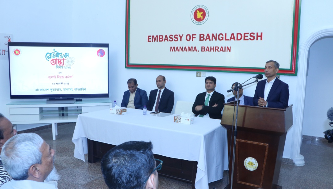 যথাযোগ্য মর্যদা ও ভাব গাম্ভীর্যের মধ্য দিয়ে “জুলাই বিয়ন্ড বর্ডার্স” এবং “রেমিটেন্স যোদ্ধা দিবস” উদযাপন করেন বাংলাদেশ দূতাবাস বাহরাইন।
